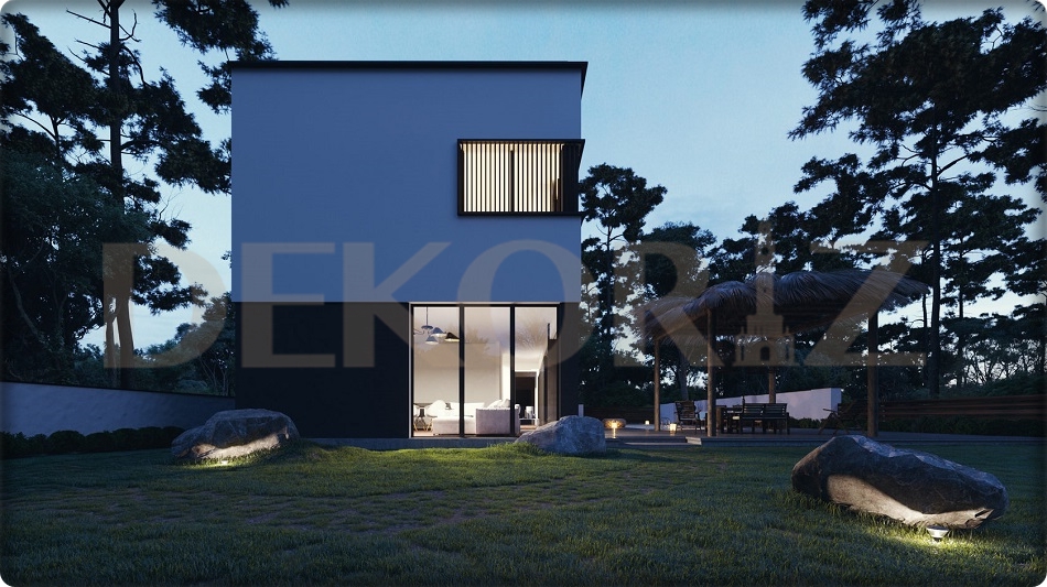 Yapının dış cephesi, çatı yapısı, pencere ve kapı düzenlemeleri gibi unsurlar yer alırken, iç mekânda, açık planlı yaşam alanları, geniş cam yüzeyler, yüksek tavanlar tercih edildi. Konsepte uygun mobilyalar, renk paletleri ve malzemeler seçilerek tasarıma nokta konuldu.